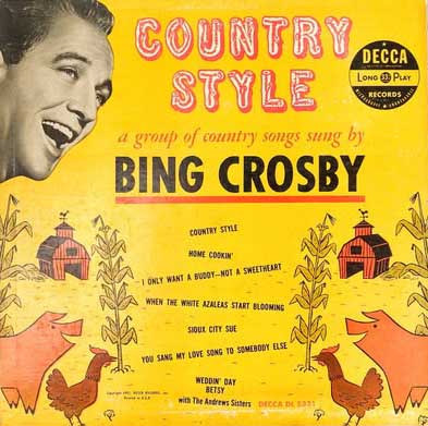 En France, Ray Charles est connu comme un chanteur jazz-pop-soul-rhythm & blues alors que ses deux plus grosses ventes concernent ses deux albums de country (qu’il imposa à sa maison de disques), New Sounds In Country Music. Quant à Bing Crosby, ceux qui le connaissent encore, le cataloguent crooner et basta... C’est oublier que ce grand artiste, chanteur, comédien, auteur-compositeur, né à Tacoma, Etat de Washington, en 1903, mort en 1977 (en Espagne où il séjournait), enregistra dans les années trente-quarante un album intitulé Bing Sings Country. Avec une vingtaine de grands standards country & western au programme. Bing